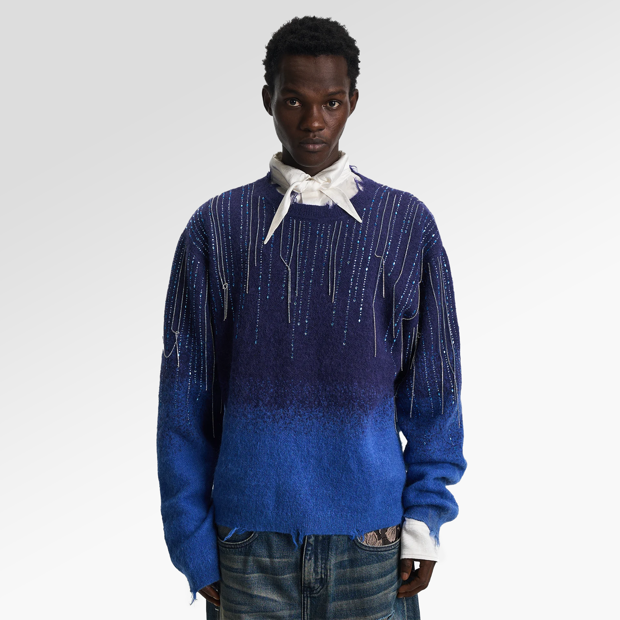 Birth Of A Royal Child Falling Star Chain Knit Sweater In Blue