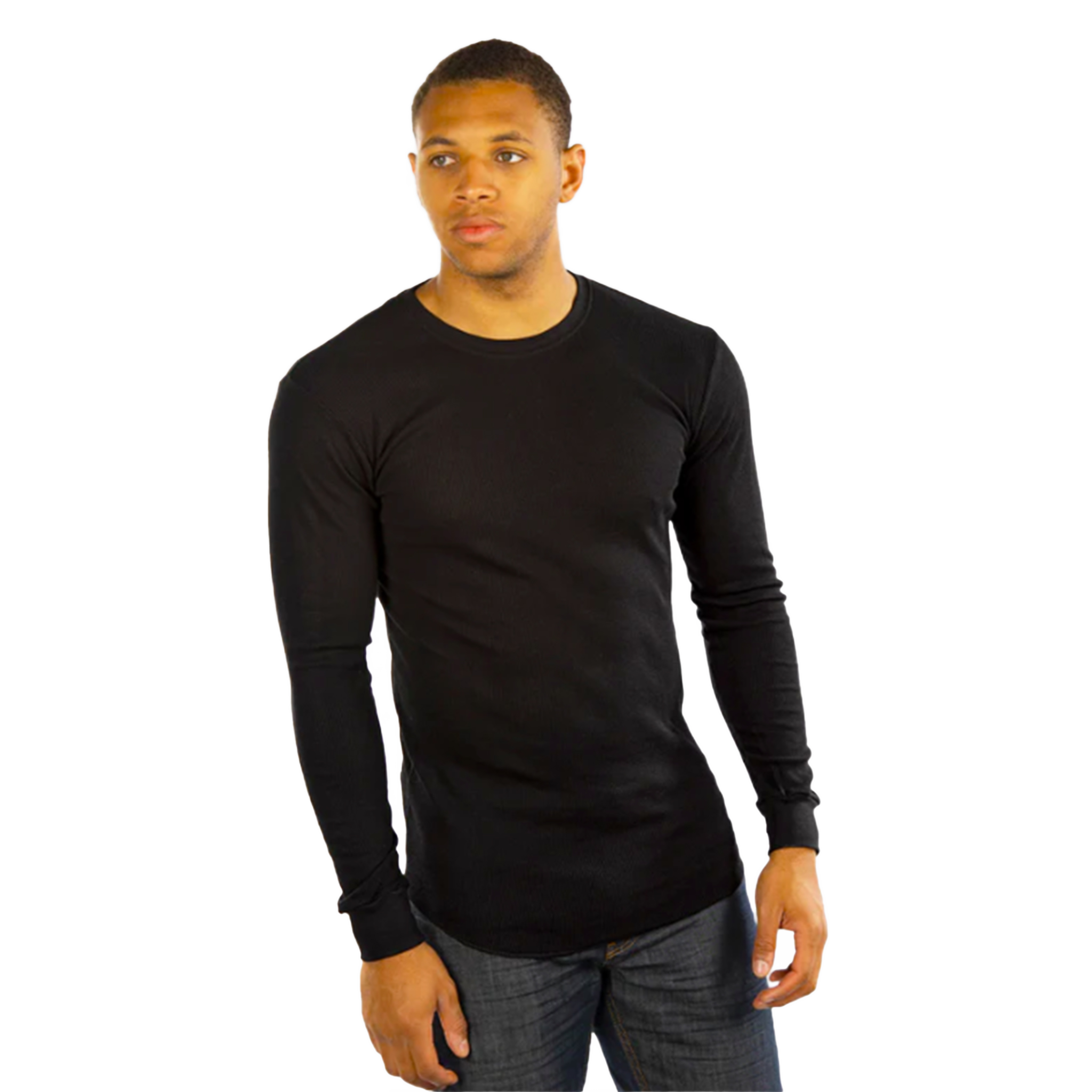 City Lab Waffle Fitted Thermal Crew Neck Shirt In Black