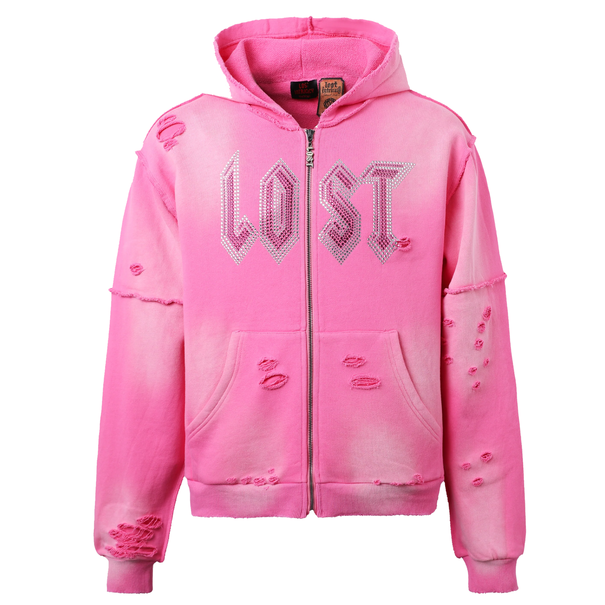 Lost Intricacy Rhinestone Hoodie In Pink For Men