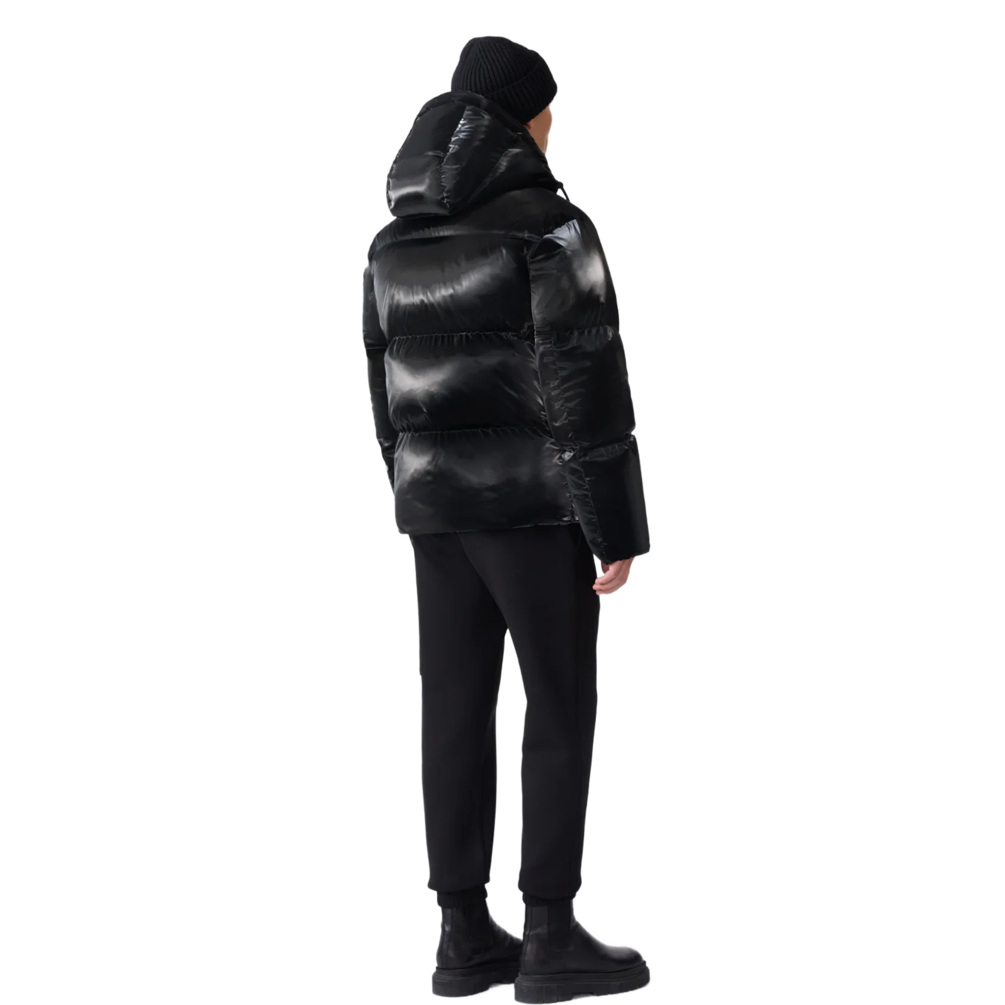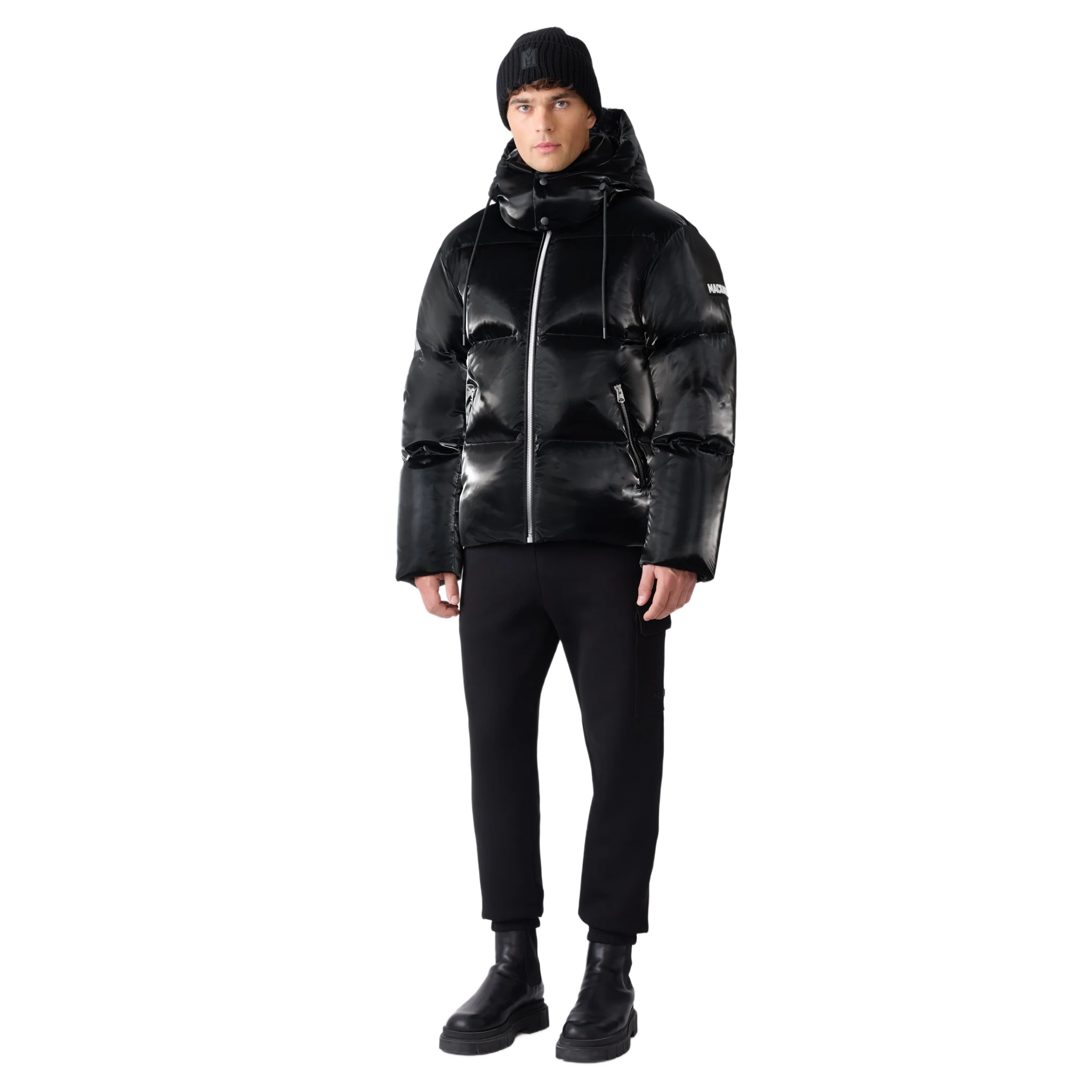 Mackage KENT-GLO High-Gloss Hooded Down Jacket In Black