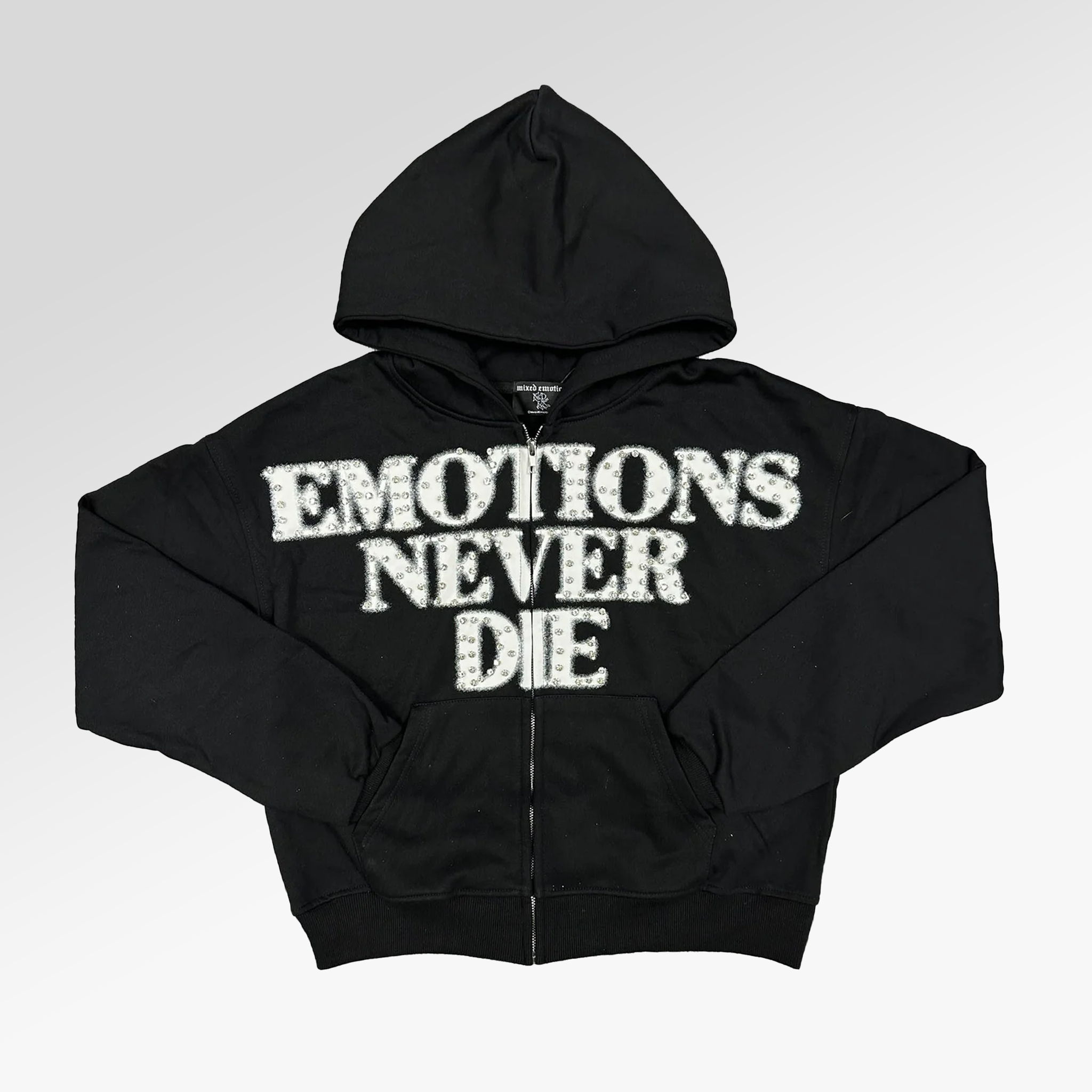 Mixed Emotions Black ‘End’ Rhinestone Hoodie