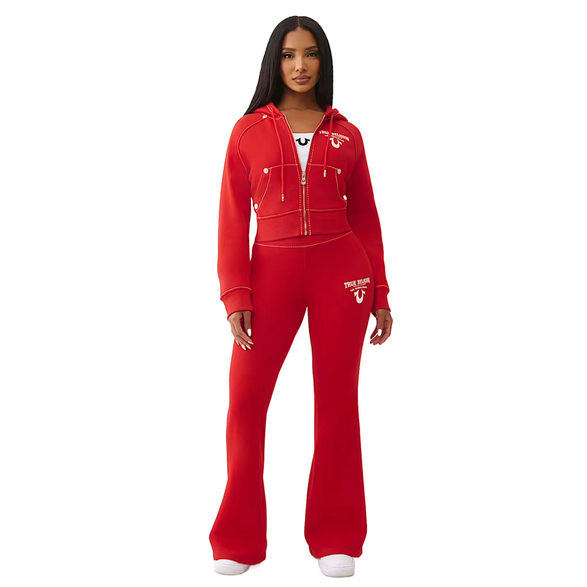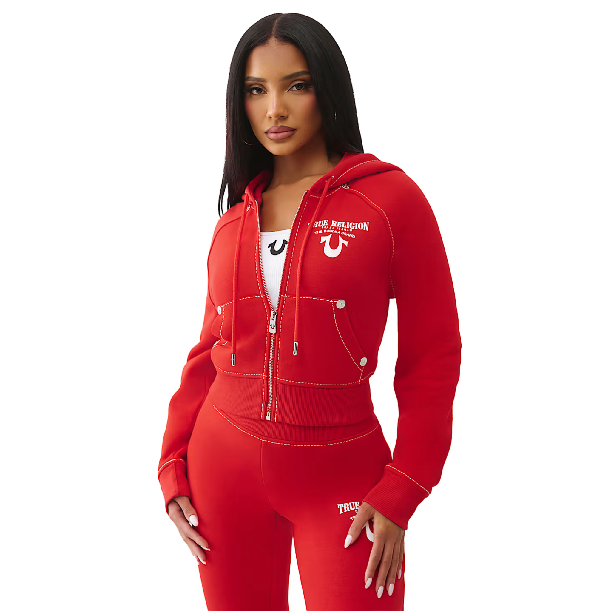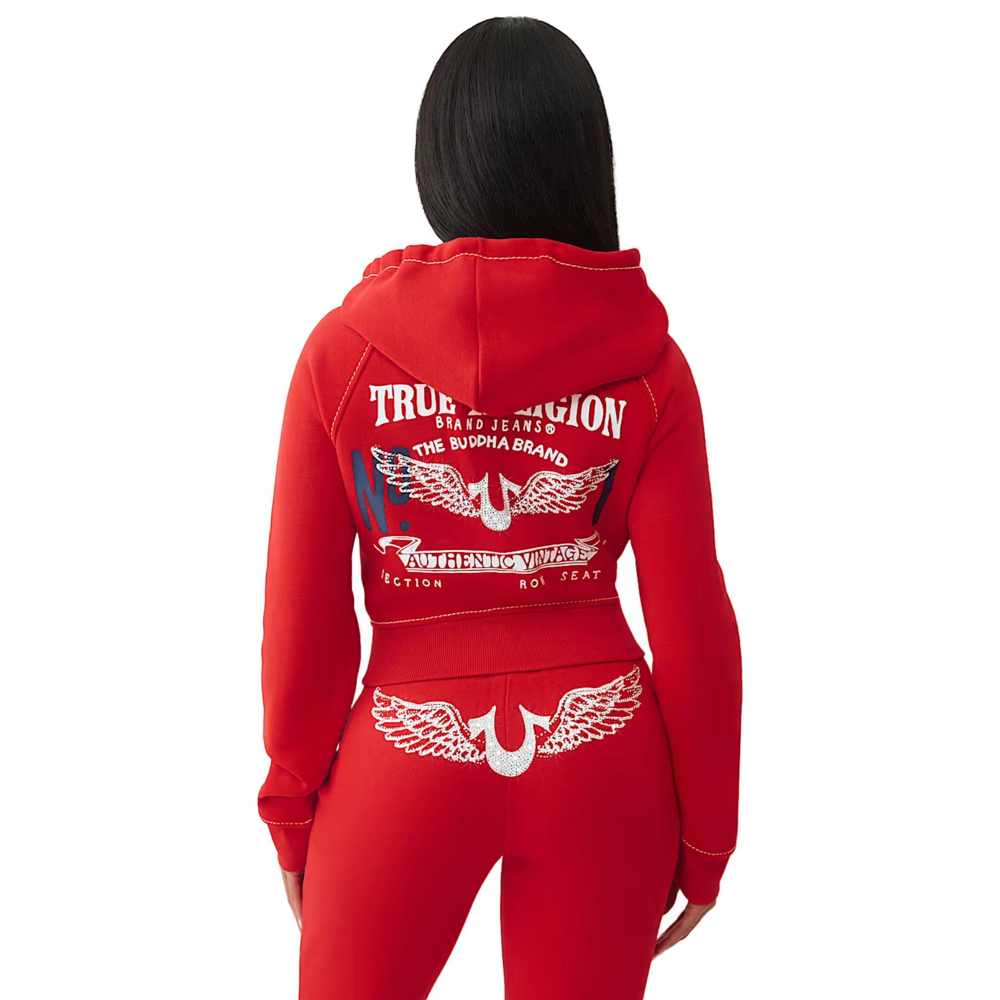 True Religion Shrunken Crystal Wing Zip Sweatsuit In Cherry