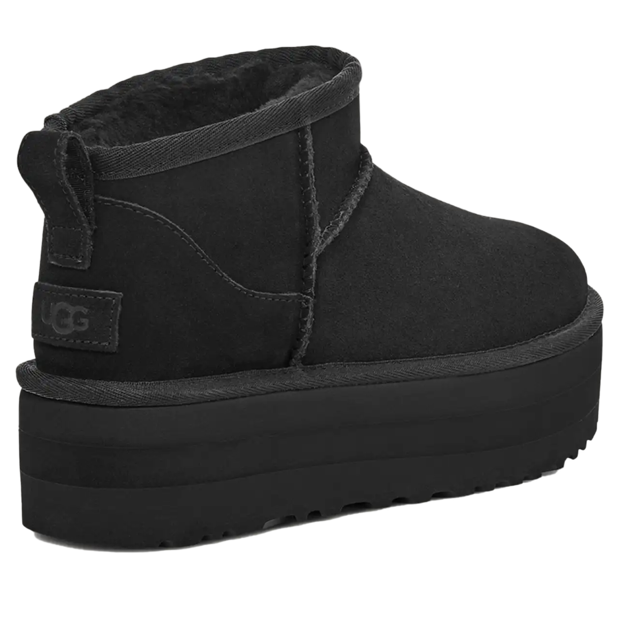 • The UGG® Logo, embossed suede heel label